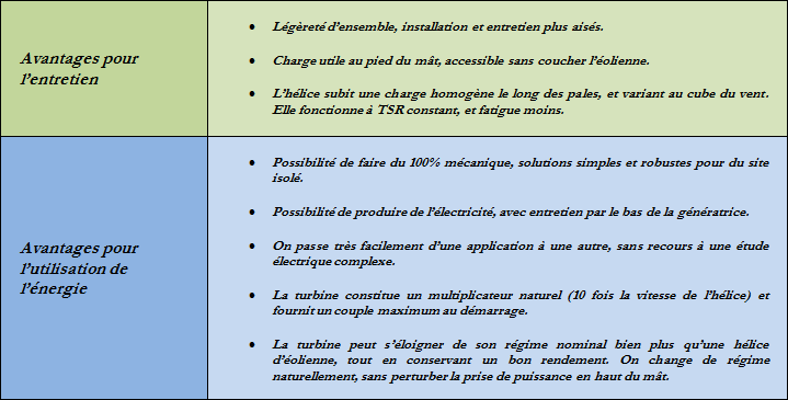 · La turbine constitue un multiplicateur naturel (10 fois la vitesse de l’hélice) et fournit un couple maximum au démarrage.