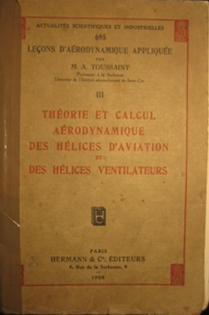 Toussaint était professeur à la Sorbonne et Directeur de l’Institut aérotechnique de Saint-Cyr. Son ouvrage sur les hélices est encore couramment utilisé aujourd’hui.