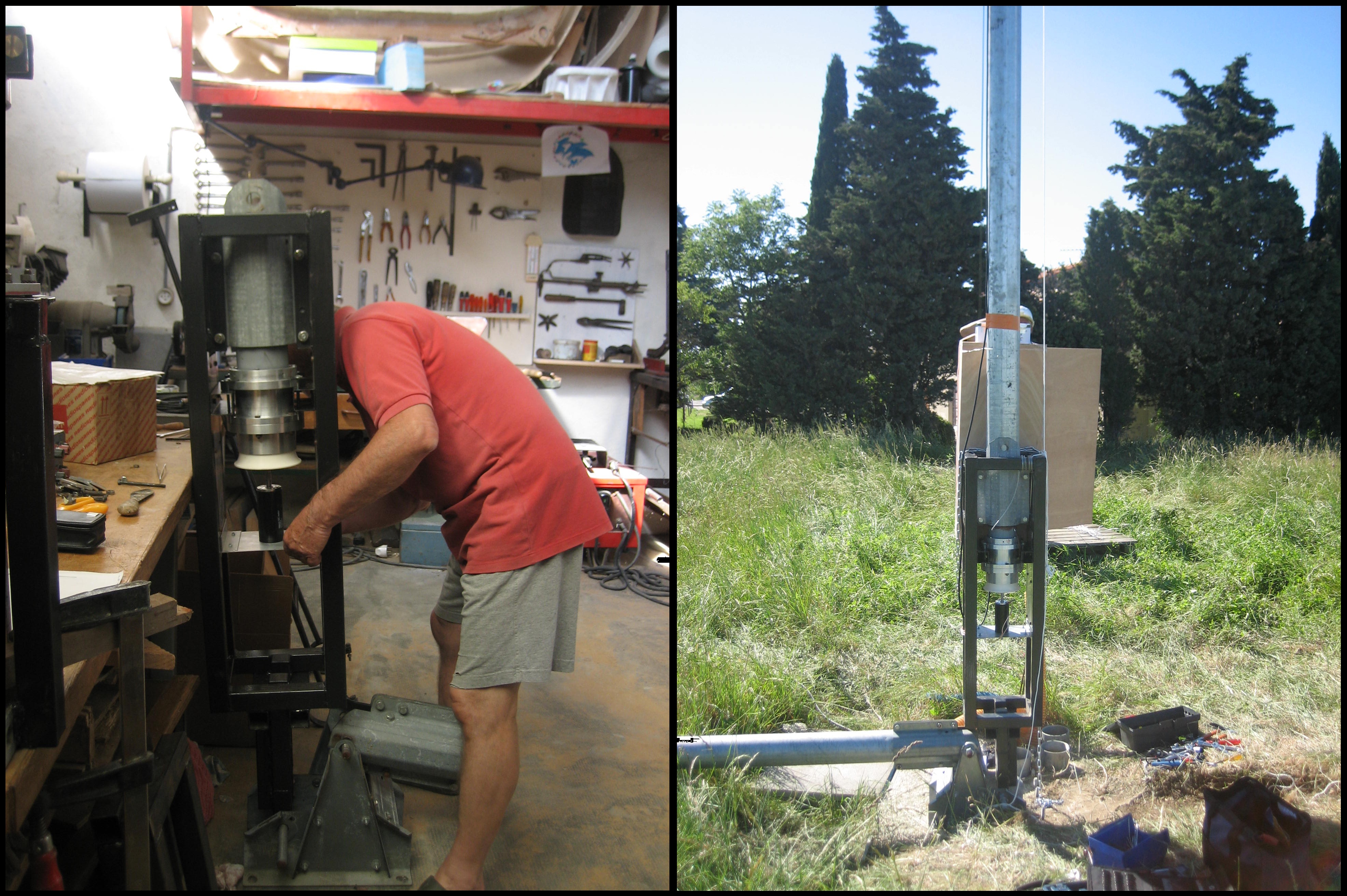 Le mât prêté par Olivier Krug se trouve sur son site d’essai à Avignonet-Lauragais, à 30km au sud de Toulouse. Ce site possède trois installations, toutes sur mât haubané basculant : un mât de 24m de haut, et deux mâts de 12m. Sur le mât de 24m tournait une WestWind. Le second mât de 12m était prévu pour une éolienne Piggott de la licence STER, qui n’était pas montée.